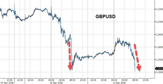 英镑兑美元迅速回吐日内涨幅转跌,跌至1.2553、逼近亚太盘初录得的日低1.2552,北京时间12日零点40分过后一度跌破1.2500关口,日内跌幅超过0.5%,刷新去年4月以来盘中新低。此前一日,英镑在梅确认推迟脱欧协议投票后一度跌破1.2510,创去年4月以来新低。