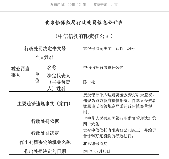 两家龙头信托公司又吃罚单!12月19日晚间,银保监会挂出两张罚单,中信信托、建信信托被北京因保监局处罚,均被责令改正并处90万元罚款。处罚决定均在12月10日作出。中信信托、建信信托双双被罚处罚信息显示,中…