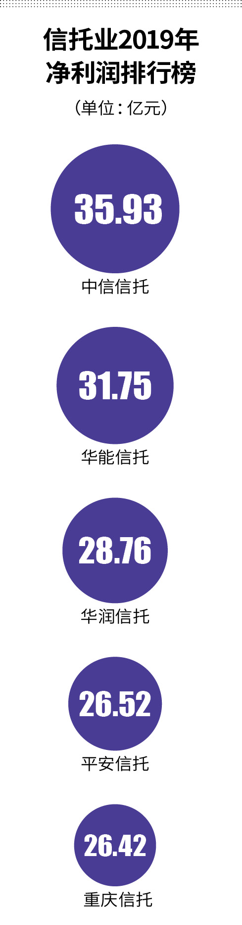 【中信再登顶 信托业头部阵营分化】经历近两年风雨的信托行业,2019年业绩有所改观。 截至目前,57家信托公司已披露2019年未经审计的财务数据,中信信托以35.93亿元的净利润居行业榜首,华能贵诚信托有限公司下称…
