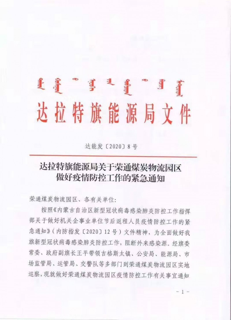 来源:榆林煤炭交易中心 最新消息:昨日,达拉特旗能源局发布了《关于荣通煤炭物流园区做好疫情防控工作的紧急通知》,通知中称,从2020年2月5日上午8点后,禁止一切运输车辆进入荣通煤炭物流园区,现有园区内运…