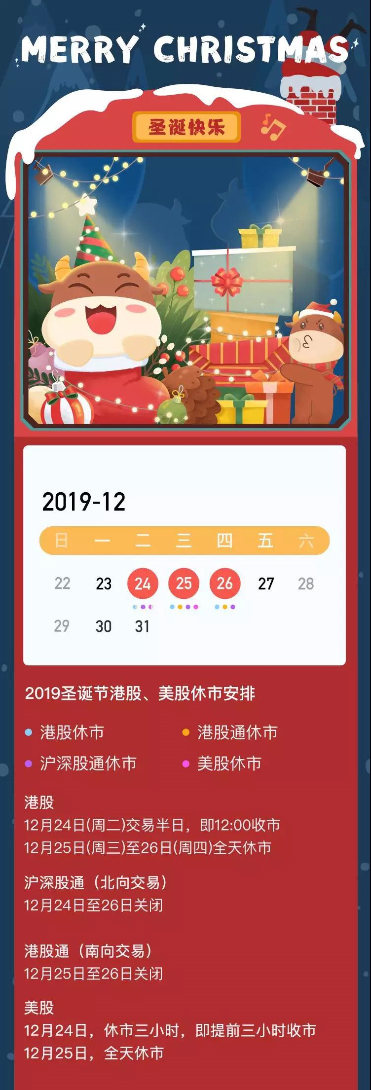 2019圣诞节港股休市安排:25日至26日全天休市 沪深港通
