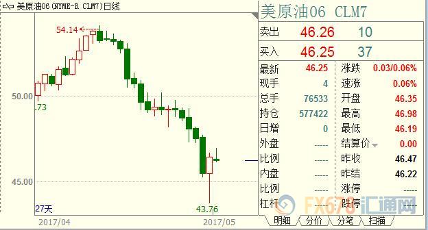 2017-05-04 21:10:19飞鱼顺水鱼外汇网版权所有顺水鱼外汇财经手机版扫描下载顺水鱼外汇财经APP顺水鱼外汇网讯——油价5月4日暴跌逾2%,美国原油期货触及五个月新低46.73美元/桶,布伦特原油期货同样触及五个月低…