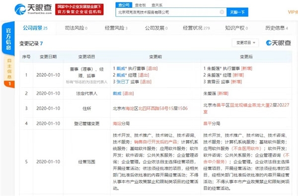 天眼查数据显示,1月10日,北京拜克洛克技术服务有限公司发生工商变更,ofo创始人戴威退出法定代表人、执行董事和经理,由朱爱莲接任。此外,张巳丁退出监事,由袁雪云接任。天眼查数据显示,1月10日,北京拜克洛…