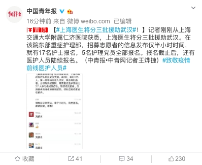 【上海市各类企业不早于2月9日24时前复工】本市区域内各类企业不早于2月9日24时前复工。涉及保障城市运行必需(供水、供气、供电、通讯等行业)、疫情防控必需(医疗器械、药品、防护品生产和销售等行业)、群众…