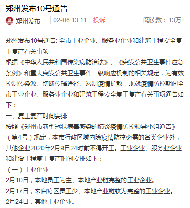 类企业将陆续“有条件”复工复产 _ 东方财富网