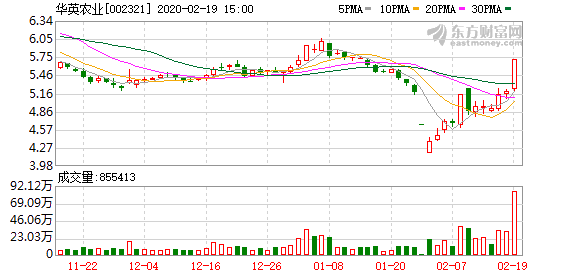【养殖业板块表现强势 华英农业领衔多只个股大涨】从盘面上来看,养鸡、猪肉等养殖类板块表现强势,截至午间收盘,华英农业涨停,圣农发展、益生股份、民和股份、温氏股份等多只个股大涨。今日(2月19日)A股三大股…