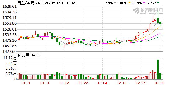 周四(1月9日)亚市尾盘,国际现货黄金价格震荡走低,现交投于1555美元附近。 金价在周三(1月10日)站上千六关口,为近七年来首次,此后大幅回落50美元左右至1560美元附近,因美国与伊朗间地缘紧张局势迅速降温。 …