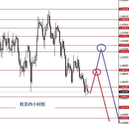 欧元直接下行,昨日最低1.0650区域,日图收阴柱。从图形来看,欧元直接下行,再向上测试1.0830的概率减少了很多,继续震荡下行的概率较大,这个波段还是先看向1.0630区域,成功下破后再看向1.0580区域。日内关注…