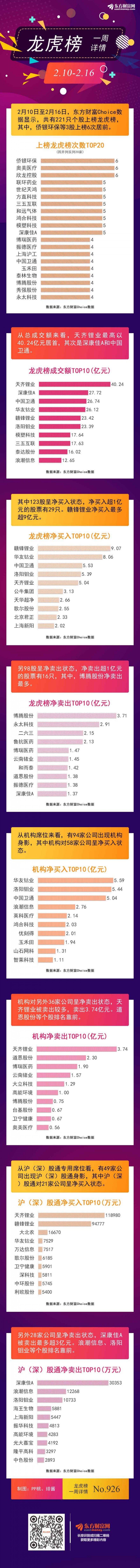 【图解龙虎榜:机构疯狂抢筹净买58股 3股上榜6次居前】2月10日至2月16日,东方财富Choice数据显示,共有221只个股上榜龙虎榜,其中,侨银环保等3股上榜6次居前。这里面有您关注的股吗?2月10日至2月16日,东方财…