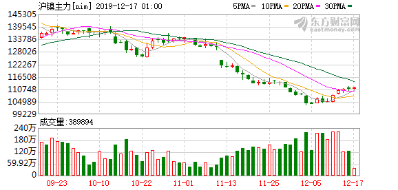 【沪镍主力期货跌逾2% 失守11万元整数位关口】12月18日消息,国内商品期货日盘整体跌多涨少,沪镍、苹果及甲醇跌幅领先,其中沪镍主力合约跌破11万元/吨整数位关口。分析师称,预计2020年镍价或将继续面临大幅波…