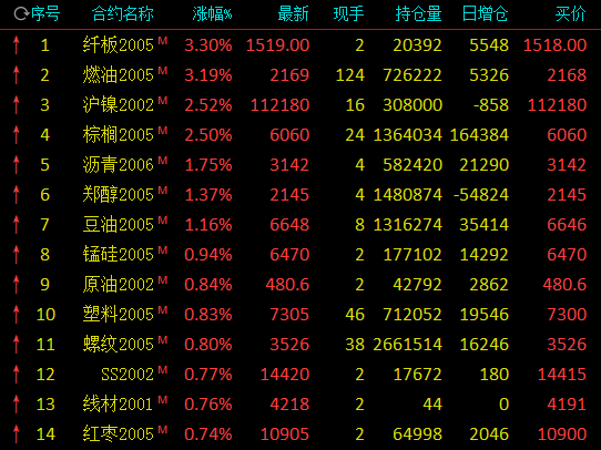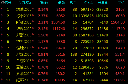 期市早盘大面积上涨:燃油涨逾3%