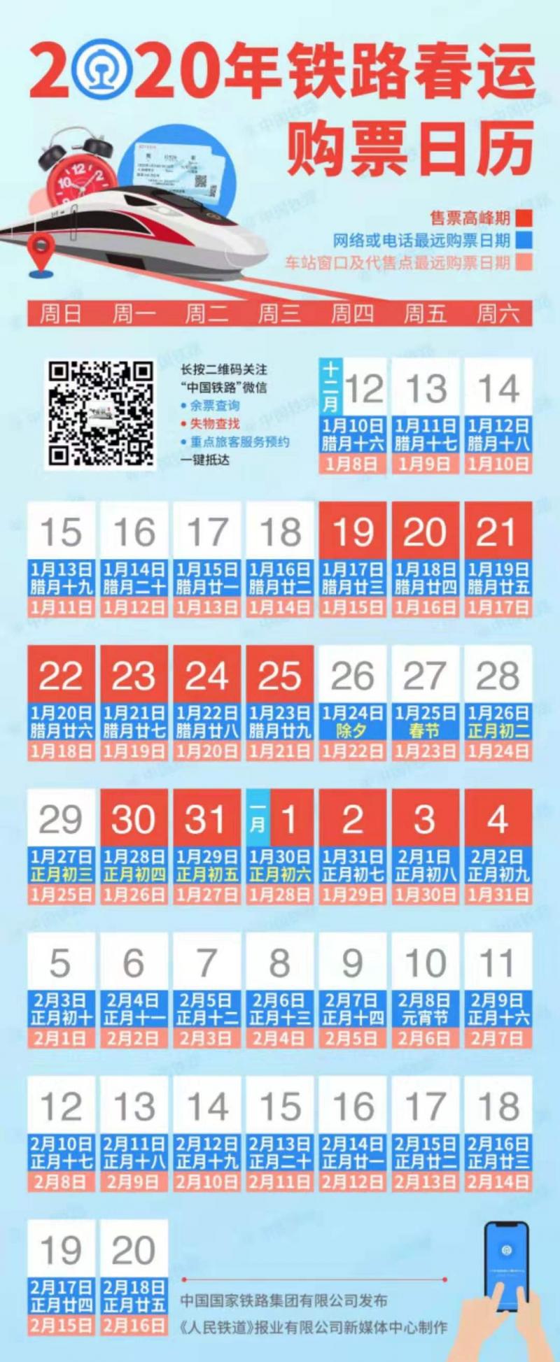 按照铁路春运火车票互联网和电话订票提前30天发售,车站售票窗口、代售点提前28天发售的规定,今天(12月31日)春节返程首轮高峰,正月初五(2020年1月29日)的火车票正式开抢。明天开始抢购明年1月30日(正月初六)火…