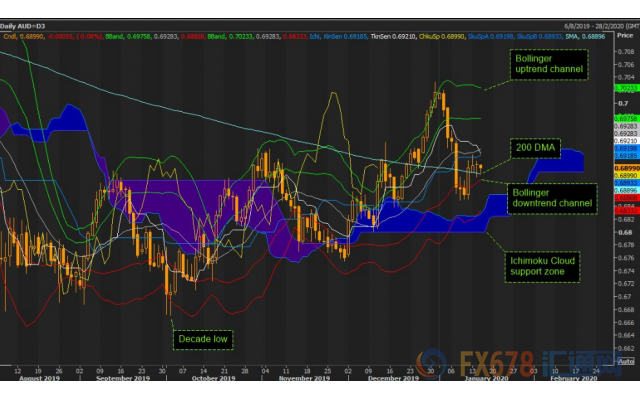 澳元兑美元回落至0.6900下方,因冒险人气消退,但前方的关键技术支撑位靠拢,将缓冲跌势。200日移动均线趋向于波林格区间,0.6880应成为稳健底部,若从该水准强劲反弹,可能让澳元重燃升势,升向0.7000,但贸易协…