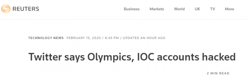 推特公司15日表示,奥运会官方推特账号和国际奥委会(IOC)媒体事务的推特账号被黑客入侵,目前已被暂时锁定。报道称,推特公司的发言人在一封电子邮件声明中说,这些账号是通过第三方平台被黑的。除此之外,这位发…