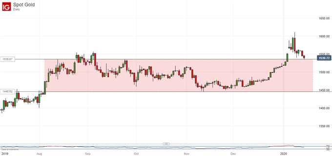 顺水鱼外汇网讯——1月8日,黄金市场剧烈动荡,在伊朗导弹袭击美军驻伊拉克基地后,中东紧张局势升级,现货黄金价格起初大涨逾2.3%,创2013年3月25日以来新高至1611.42美元/盎司;但随后逐渐回落,回吐大部分升幅…