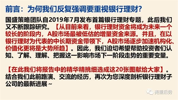 【国盛策略:18张图看懂银行理财正在发生的变革】2020新春佳节之际,我们在此重磅《18张图看懂银行理财正在发生的变革》,希望唤起广大投资者对于银行理财这一被市场所低估、且势必深刻影响未来资本市场的重要变…
