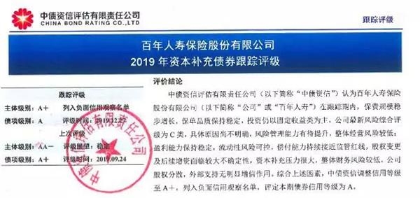 近日,中债资信评估将百年人寿的主体评级和债项评级均进行了下调。百年人寿的主体级别由AA-降至A+,被列入负面信用观察名单,债项级别由A+降至A。百年人寿的第一大股东为大连万达,万达自2018年就开始谋求股权转…