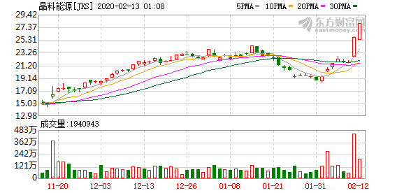 周三(2月12日)美股盘中,截至北京时间23:47,晶科能源(JKS.US)涨超6%,报27.28美元。目前总市值超过12亿美元。公司2019年第三季度总营收为人民币74.8亿元,同比增长11.8%;普通股股东应占净利润为人民币3.636亿元…
