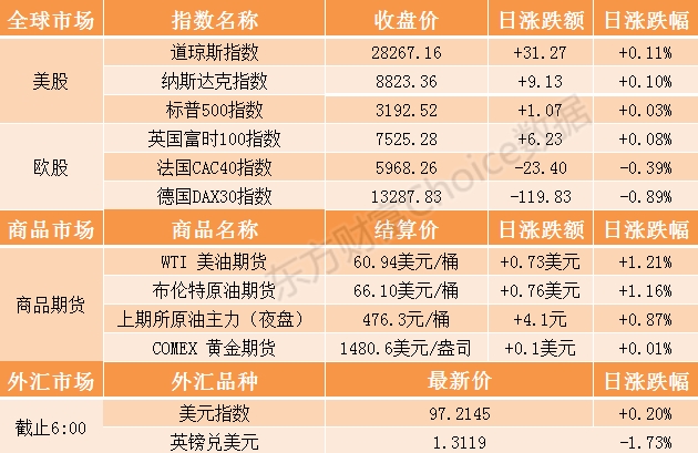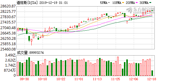 【美国三大股指再创收盘新高 录得四连涨】美东时间周一,美股全线收涨,三大股指再创历史新高,录得四连涨。道指涨约100点,盘中最高上涨至28337.49点。美国大型科技股集体收涨,热门中概股集体上涨。截至收盘,…