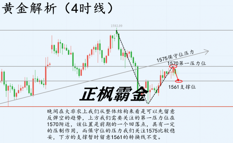 正枫霸金:2.10黄金晚盘延续反弹空头操作!