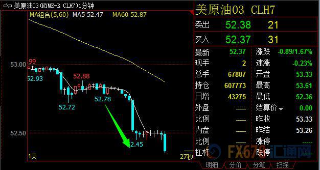 顺水鱼外汇网讯——北京时间1月18日18点左右,国际油价加速下滑,截止发稿,美国原油交投于52.48美元/桶,大跌1.46%;布伦特原油交投于54.63美元/桶,大跌1.50%。当前,关于油价上涨将更为激励美国产油商进一步提…