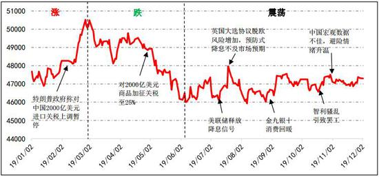 第一部分 市场研判2019年铜价整体震荡走势,价格仍然以宏观为主导,逻辑围绕贸易摩擦、经济数据走弱和逆周期调节,经济数据不好—— 铜价下跌—— 市场预期逆周期调节—— 铜价反弹—— 央行按照市场预期放水——…