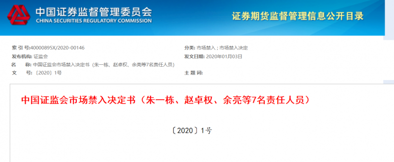 证监会官网8日晚发布2020年1号市场禁入决定书,对上海阜兴实业集团有限公司(以下简称“阜兴集团”)朱一栋、赵卓权、余亮等7名责任人员采取市场禁入措施。经查明,阜兴系私募机构发行基金产品募集资金,超365亿资…