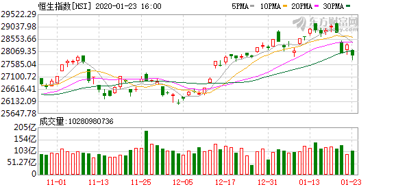 【香港恒生指数下跌近2% 医药股与流感概念股走高】1月21日,港股低开,恒指开盘跌1.2%,随后震荡下跌,截止发稿,恒生指数下跌1.77%。汽车股跌幅居前,医药股与流感概念股走高。1月21日,港股低开,恒指开盘跌1.2…