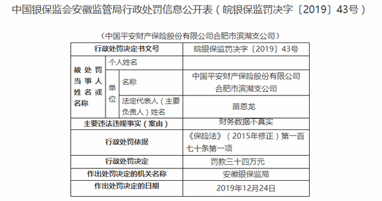 平安财险合肥被罚