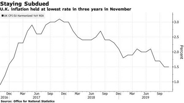 【英国11月通胀年率维持在三年新低 为英国央行鸽派提供了弹药】周二公布的数据显示,英国11月通胀维持在三年低位,低于英国央行的目标,在英国央行决议之际,数据不太可能改变两名英国央行委员将投票支持降息的预…