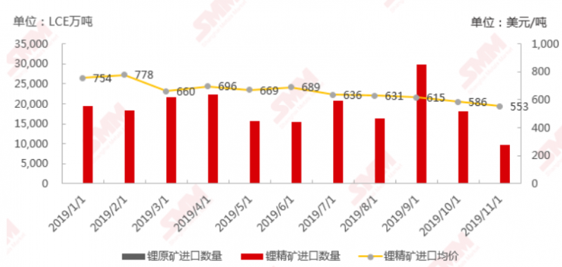 原标题:11月锂精矿进口均价553美元/吨 明年澳矿或面临被动出清 来源:上海有色网生意社12月23日讯 2019年1-11月中国锂矿石进口数据 2019年11月国内锂辉石精矿进口量为7.3万吨实物吨,环比减少46.1%,同比减少50.…