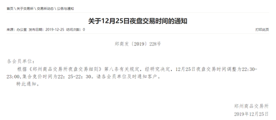 新浪财经讯 12月25日,郑商所公告称,经研究决定,12月25日夜盘交易时间调整为22:30-23:00,集合竞价时间为22:25-22:30。