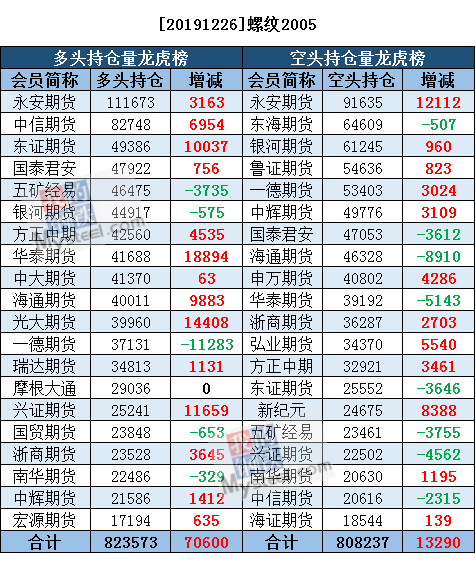 26日黑色系持仓日报|持仓_顺水财经_顺水网