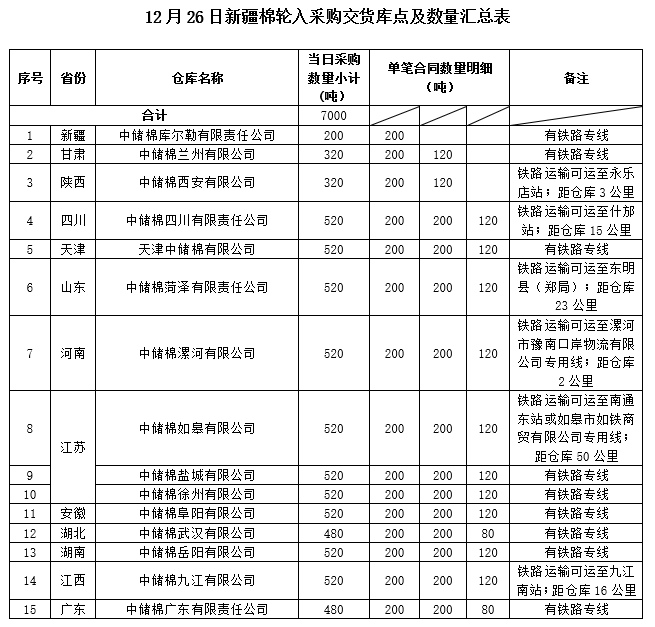 26日新疆棉轮入采购交货库点及数量公告|新疆棉_顺水财经_顺水网