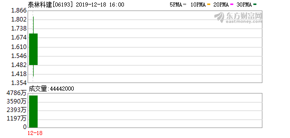 江苏建材商泰林科建(06193)今日挂牌,开报1.7元,较招股价1.3元高近31%,盘中高见1.82元,低见1.4元,最终收报1.48元,较招股价高出0.18元或13.85%,以每手2000股计算,不计手续费,赚360元。(责任编辑:DF120)郑…