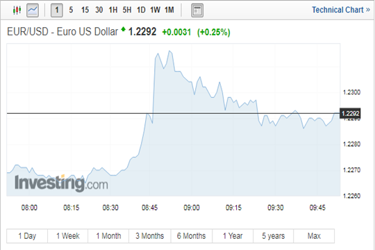 欧元兑美元报1.2292,上涨0.25%,脱离了隔夜触及的低点,一度高见1.2323美元,为2014年12月以来的最高水平。