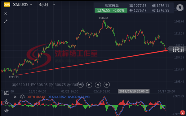金价的大趋势走势也创造了头肩形态,近期跌破右肩颈线。沈梓绮分析,自上月下旬形成这种格局以来,他一直看跌黄金。“投资者应关注1264美元,因我认为这是下一个关键支撑位从黄金日图级别来看,黄金继续呈现下跌模式,昨日在盘中一度跌破颈线位,但被收回形成下影线,表面多方有守,下方支撑依旧强烈。目前,行情再次来到颈线位处,说明空头的强势来袭,多空双方生死战开打。