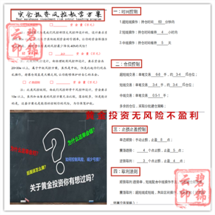 我没有100%盈利的做单方案,没有零风险的投资计划,但是却有稳健收益的方法。如果你要一夜暴富,那很抱歉,这里不适合你。投资是一个漫长的过程,锦云在这条路上一直都是寻求稳健操作,稳健盈利。交易市场盗亦有道。不要让暴富的心里来掩盖你的堵性。这是一个成功人的地方,那么我们也只有成功人的办法。