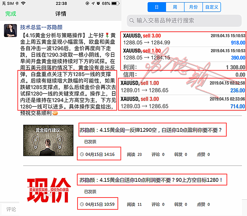 苏隐颜:4.16黄金现价空单10点利润你没抓住?反复亏损何解?