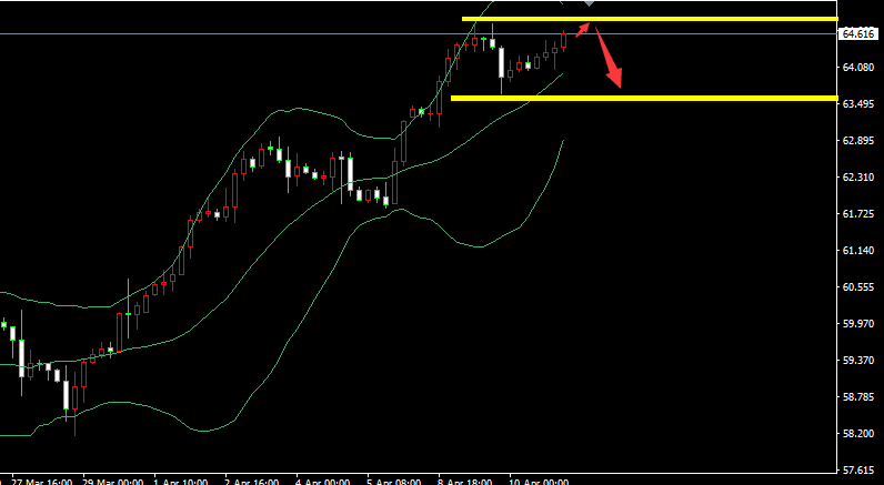 日图进入慢涨整理,也就是连阳之后伴随小阴线修正,当然修正的空间依然不大,以高位强整理代替回落空间,边慢涨边整理修正,结合上周的修正走法,日图十字线之后会进入续十字的修正。重点看后面的空间,强势修正仍是整理为主,弱势修正才有空间回落。综合来看,今日午夜操作思路上金科解盘个人建议以回调做多为主,反弹高空为辅,上方压力短期关注64.8-65.0一线阻力,下方关注63.6-63.8一线支撑。