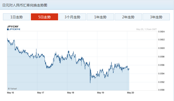 第一黄金网讯 据银行间外汇市场最新数据显示,2016年05月20日日元兑人民币汇率中间价为:1日元兑人民币0.0595元,100日元兑人民币5.95元。1人民币对16.8047日元,100人民币对1680.47日元。