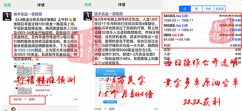 黄金非农周大赚2.1万美金!大把利润你又错过了多少?!这个市场,没有哪个人的单子能够保证100%正确,隐颜可以跟你认真的讲,隐颜也不可能百分百单子全对,也会有错单的时候,但是为什么一直说找隐颜指导操作而不是自己操作?因为自己操作的胜率可能连40%都不到,而隐颜通过自己的多年经验,可以将胜率带到80%甚至是90%以上。这样整体来看你认为还赚不到钱吗?这个市场不是挣不到钱,只是它确实需要实力才能盈利!如果你连行情趋势和高低点位都判断不准,盲目操作,跟风操作,凭感觉操作,最后亏损严重爆仓出局,就不要来怨天尤人,后悔不跌!路是自己选的,趁资金充足,趁行情还在,你的结局是赢或是亏,现在还可以选择!
