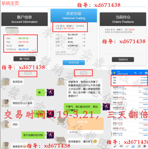 来自重庆的张先生,今年3月中旬找到筱绡,加入我们的翻倍方案,但是因为只有之前亏损比较严重只能拿出3万美金来跟上筱绡这边的操作,筱绡这边给其制定好风控方案,并且为其打造了了严谨的投资方案以及翻倍方案,前期边操作筱绡边帮他调整心态,原计划在一个月内实现翻一倍,但是近期行情较好,每天小仓位操作稳健获利,3天资金已达到翻倍状态,能在短时间内取得如此成绩确实非常惊喜,四月扬帆起航,行情好不好不用我说,你确定还不跟上操作吗?