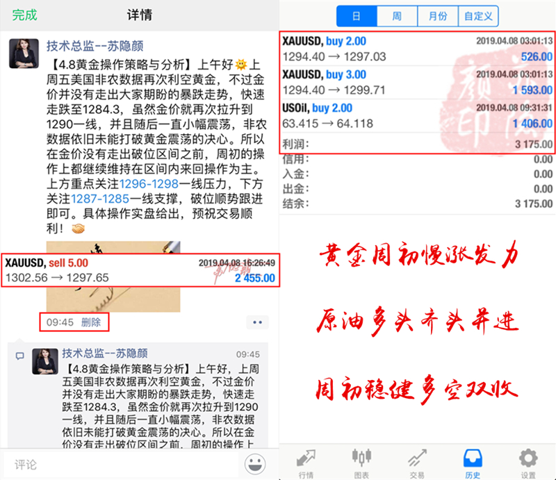 苏隐颜:4.10黄金1306空你又错过了?还有多单利润可以弥补!