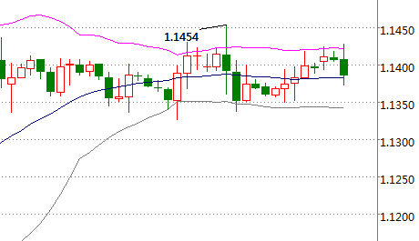 随着德国公布2月经季节性调整出口较前月增长1.3%,创去年9月以来最大增幅,2月进口则小增0.4%,促使贸易顺差扩大至198亿欧元,而且法国央行( BOF)估计,第一季国内生产总值(GDP)较前季增长0.4%及3月企业信心指数升至99,激励欧元兑美元回升至1.1419高点。预估今日欧元兑美元阻力于1.1400-20,支撑于1.1320-40。