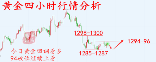 晚间操作思路:回调1285附近多单进场,止损4美金,目标1294-1296;破位继续上看;