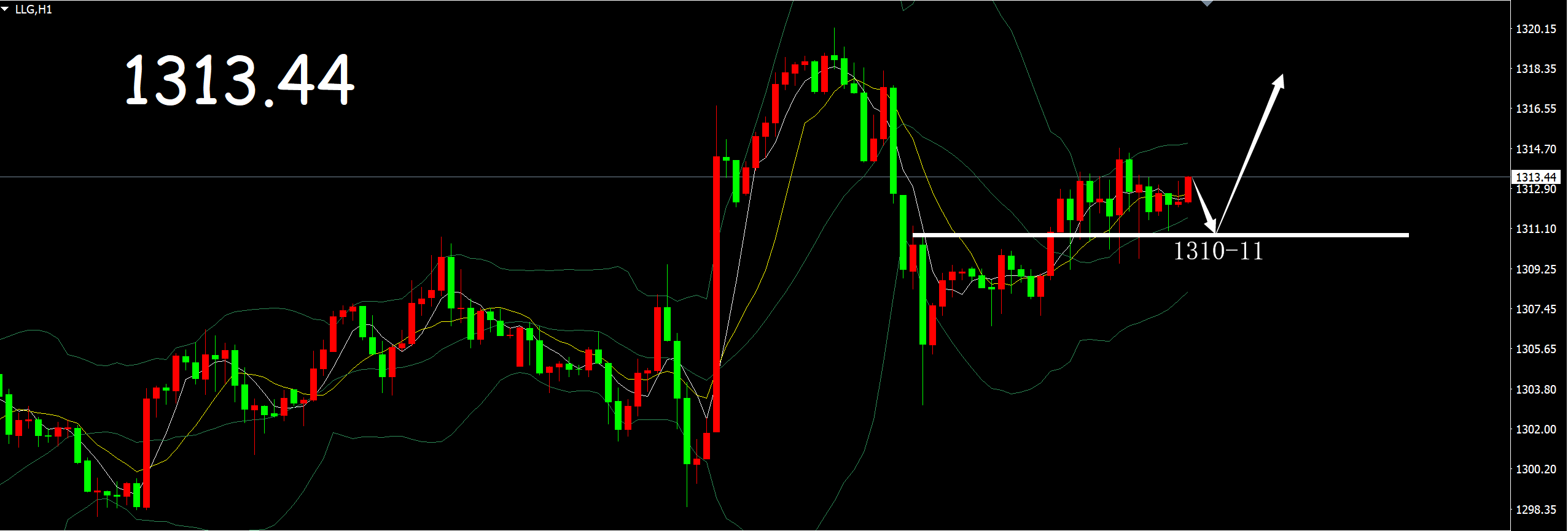 美联储会议宣布今年不会加息就是一个导火索,同时也奠定了今年的走势会是一个偏强的格局,短线方面周五多次向下回撤都没有太大的力度,最终收盘1313附近,特别是小时线方面一直在布林带上轨运行,这是一个偏多的信号,下周一建议先多,继续看震荡上行,但是直接去突破前期高点1320的概率比较小,周初更多的是围绕区间震荡为主,方向上主要是看向上突破为主。