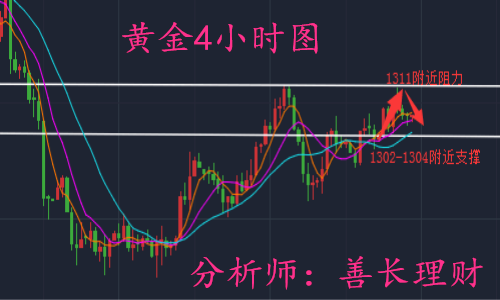 1、金价1301-1302一线多单进场,止损4美金,目标1308-1310一线;