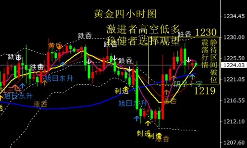 昨晚现货黄金走势基本符合笔者晚评分析,金价在1227-1230区间存在较大阻力,金价需要重新整理,短线建议不宜追高。黄金短线多空争夺激烈,周二下破1220关键位,周三晚间后半夜收复失地,昨日周四继续企稳1220上方震荡上涨,但是又出现冲高回落走势,最后在低位1223-1225横盘收盘。那么今日操作上,笔者认为需关注金价隔夜回踩支撑1222-1223是日内的分界点。目前行情仍是震荡,我们防守区间1219-1230,静待破位。破位1230我们看向1236-1240附近,破位1219我们下看1213-1211附近。