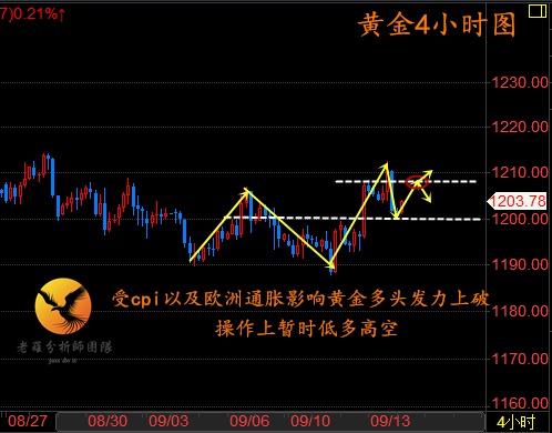 4小时图上,黄金昨晚于1212附近止涨回落,下触摸至1200,为后市黄金的空头带来了一点希望,但是整体走势依旧没有逃出震荡的区间,在国际消息面来看,黄金目前的利多局面是占优势的,因此在没有突破上方关键点位的情况下,后市依旧可以震荡走势来看待,操作上暂时偏多,但是还有一点要注意,今日周线收官,谨防黑天鹅,带好止盈止损;